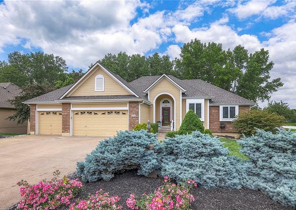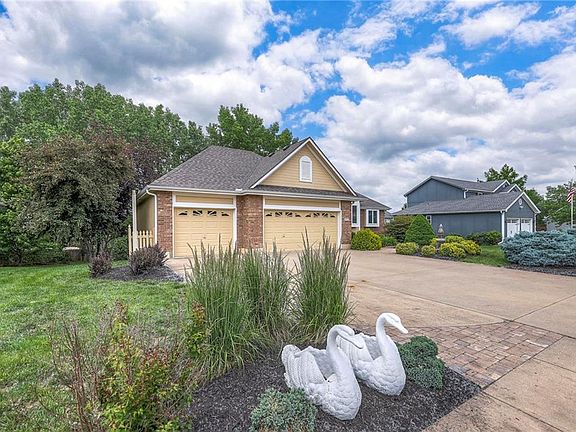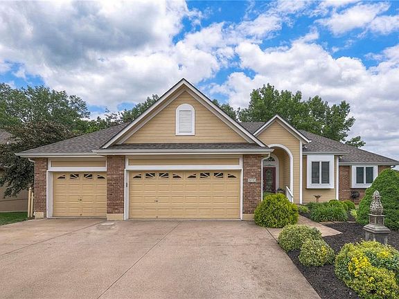 Well maintained RANCH home with 2 MASTER SUITES for muli-generational living or hosting. Located in a highly sought after location in Raymore-Peculiar School District. This home has so many great features and options that you will love! Kitchen has newly painted, professionally refinished cabinets, granite island and HUGE walk in pantry. Formal dining room. Living room boasts a beautiful gas fireplace. Hardwood floors in main living area. Master bedroom with large walk in closet and on suite with double vanities, jacuzzi tub and shower. Spacious 2nd and 3rd bedrooms on the main level. Laundry room is off the kitchen with a sink and a 2nd laundry room hook up on the lower level. Tons of room in the basement with 9 ft ceilings, FULL KITCHEN, pantry, gas stove and dining room. Endless possibilities to turn the wide open finished basement into a living room, recreation room, office or work out room. Basement also has a 2nd large master suite with full bathroom. Wet bar and counter for entertaining. Easy access with a WALK OUT basement that leads to the backyard with a patio and pergola. COVERED patio deck overlooking the PARKLIKE backyard with scenic stream and gorgeous landscaped gardens. Backyard has more storage in the 12X16 SHED. Plenty of indoor parking with a 3 car garage. Roof is 1 year old. Exterior paint is 2 years old. Convenient location close to 49 Hwy and 291 Hwy, shopping, schools and restaurants. Home is also equipped up with a chair lift.