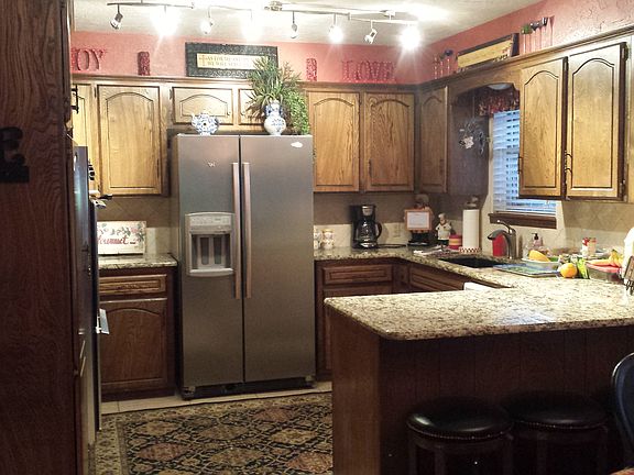 UPDATED THRU OUT, beautiful hardwood flooring, carpet, large tiles, granite counter tops, paint, texture (no popcorn), blinds, lite fixtures, sinks, faucets, unique vanity in guest bath. Recent heat/air, 2 hot water tanks, inground storm shelter. Oversized bedrooms, Master suite offers 2 closets! Extras are TREES, TREES, established landscaping front and back, massive storage spaces, covered patio, gas line to fireplace, and for your outside grill. 10x20 storage building is negotiable.