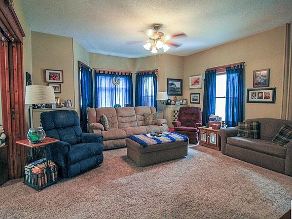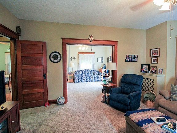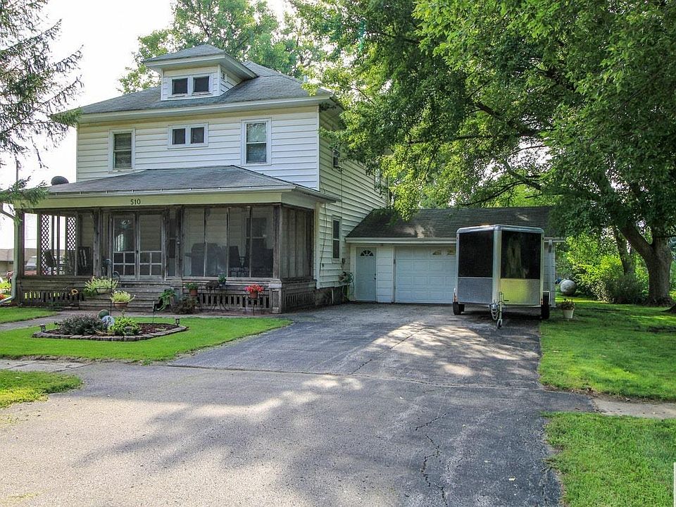 Small town living at its best! Great living space in this full-of-character 1914 Sears home situated on a large corner lot, featuring original woodwork, two sets of pocket doors, and open staircase. Large living room, entry room, and dining room to accommodate your many guests. Nice kitchen, main floor laundry, and full bath on main floor. Upper level has four nice-sized bedrooms with large closets with a window in each closet, and a full bath. There is even an open staircase to the third floor attic! Attached two car garage, and a screened front porch to enjoy your early morning coffee or evening snacks.