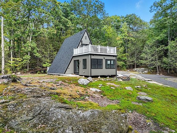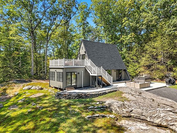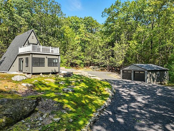Gorgeous fully rebuilt A-frame on 2 wooded acres just 12 minutes to downtown Westfield! Taken down to the studs and completely renewed with brand-new siding, windows, and roof. Stunning Trex balcony with vinyl railings off the primary bedroom. Enjoy year-round comfort with mini-splits throughout. Detached 2-car garage offers storage and convenience. Brand new septic and well provide peace of mind. This move-in ready retreat blends modern upgrades with rustic charm—perfect for those seeking privacy while staying close to town.