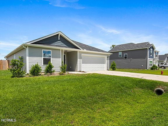 If you're in the market for a single-story home with plenty of heated square footage, your search ends here! Presenting the Venture floor plan, which offers over 1,800 heated square feet. This home features four generously sized bedrooms, two bathrooms, and a two-car garage. The kitchen is sure to impress any chef, with its ample cabinet and counter space, including an island that provides additional seating and workspace. You'll appreciate the prime location, close to shopping, dining options, and Camp Lejeune. The Venture floor plan perfectly suits your needs! Make an appointment for a room-by-room tour today!