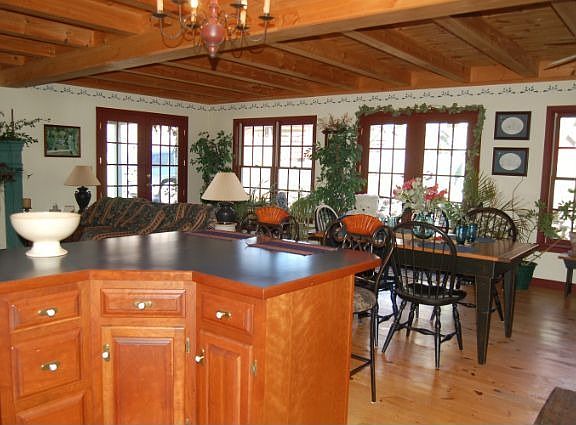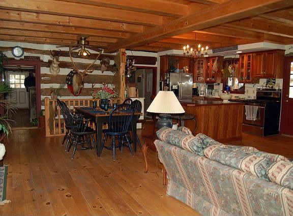 Magnificent older home restored and updated plus new addition. Comfort, Character and style. Boasting wood floors, open beamed ceilings, addition with great room concept and new kitchen and huge master bedroom suite with private bath. Additionally there is a separate living room with fireplace and built-ins, a finished family room in basement with wood stove and bar. French doors, patio, bank barn and 10.3 acres in "clean and green" (lower property taxes) in an unsurpassed setting.