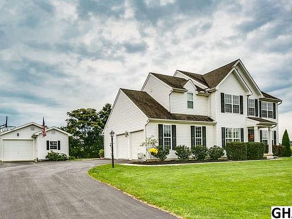 Lovely 4 bedroom 2 1/2 bath Keystone built home in Thistledown, just minutes from Hershey (Palmyra schools). This home has a side entry 2 car garage and an incredible detached garage/workshop! Other features included a finished basement, hardwood floors through much of the 1st floor, corian counters, stainless appliances, gas fireplace, and economical gas heat! Large master suite with dual vanities, large shower and corner whirlpool tub. Private yard with patio and fire pit backs to Hershey farmland!