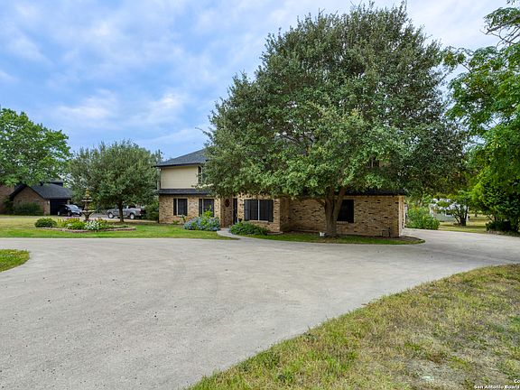 What an incredible chance to own a modernized farmhouse just walking distance to Lake McQueeney! As you approach this stately manor from the road you pull into a circular driveway and are greeted by a 7 foot fountain that attracts birds of prey, white tailed-deer and colorful migratory birds! Step inside the home to a welcoming entry-way and a huge office to the left with custom sliding barn doors and a dedicated formal dining room to your right. Custom hand-scraped lightly colored hardwood floors adorn the entire first floor. As you move through the home you come to the massive family room with custom built-in shelves that separate this room from the totally re-designed kitchen with butcher block counters, custom copper hardware and freshly painted cabinets. The utility room completes the tour of the first floor and believe me--you could host a party with how large this laundry room is! Upstairs you have one of the largest master bedrooms currently on the market--so large you could fit 2 king beds and still have room for a couch. The Master closet is equally impressive--a whopping 29 feet long! The Master bathroom features a 2 person shower with TV, beautiful high end double vanity and a classy new modern soaking tub. 3 other generously sized bedrooms, a full bathroom and a small room that could be the 5th bedroom or function as a craft room complete the 2nd floor. Outside there is an expansive covered patio with saltillo tile, and a partially fenced gigantic 1+ acre back yard that backs up to a greenbelt. Ultimate privacy and free access to the community boat ramp on Lake McQueeney! Finally, an over-sized 2 car garage, with ample boat/RV parking and a workshop complete the backyard. *NEW ROOF July 2025*