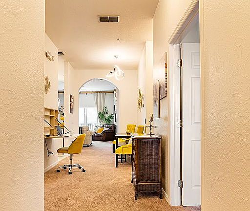 Bahama Bay Resort is a very popular vacation community in Davenport Florida. This community was recently featured on TV in the UK, A Place In The Sun. ***Newly Renovated in April 2023. | Website: vidalvacationhomes.com This SECOND floor unit, is in the middle of the building & has 3 bedrooms and 2 full bathrooms. There are two screened in balconies, one leading from the Master Bedroom and the second from the Living Room. Immediately behind this building there is easy access to one of the four community pools. Upon entering there is a clear view straight through to the balcony off the living room. The first door on the right opens to one of the two bright and airy front bedrooms. The twin room is on the left. Also on the left is the laundry closet with the stackable washer and dryer. Bathroom 2 is on the right, with a shower and no tub. Across from the kitchen is the dining area. The kitchen is equipped with stainless steel microwave and range. There are 2 pendant lights just above the breakfast bar. The kitchen overlooks the comfortable living room. The master bedroom, also bright and airy, is on the right to the rear of the unit. The master bath has a tub with shower combination. Bahama Bay is guard gated and boasts 4 pools, 6 spas, sports court, playground, sand beach and pier into Lake Davenport. Also restaurant and shop. Call for viewing appointment today. Zoned for Short Term Rental. Call for viewing appointment today.