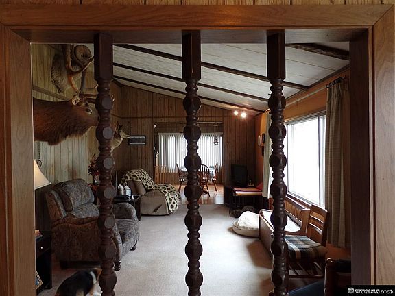 Three bedroom modular with some new laminate and vinyl flooring. Enjoy cathedral ceilings in the living and dining rooms. Kitchen is bright and has plenty of cabinets and counter space. Large master bedroom with a full bath and sitting area. Two additional bedrooms, another full bath and a laundry room off the kitchen. Two stall attached garage with alley access and extra parking space. Two storage sheds staying. Raw water tap on property. Brand new roof July 2016. Motivated Seller!