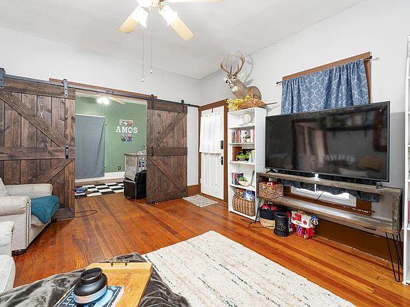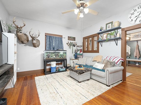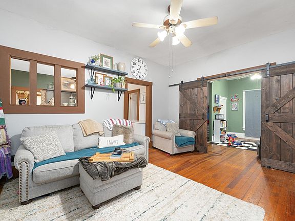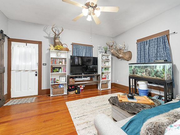 Welcome to this adorable bungalow on 3 city lots! Welcome inside where you will appreciate the original hardwood flooring in nearly every room. The front bedroom features two closets while the primary bedroom has its own door to the bathroom as well as a separate access to the back yard! Enjoy the formal dining room with a lovely built-in breakfast bench as well as wonderful shelving throughout the home. The farmhouse kitchen has an updated color palette, new hardware, and will include a refrigerator and gas range. The enclosed back porch is where the cellar can be accessed and all the laundry gets cleaned. Surrounded in original windows, the natural light is a plus (two panes were broken and should be replaced with plexiglass since the new owner may have different plans for this space). The backyard is fully fenced with a wood privacy fence. There is an oversized one car garage with a work bench and added shelving plus alley access with additional parking. Owner had three loads of gravel brought in for the parking area. Numerous updates include, fresh paint, updated locks, numerous shelves for additional storage, and new kitchen light fixture. There were also 2 large trees removed from the property. Newer siding, vinyl windows, and central heat/air (2017). The composition roof was replaced in 2018. Schedule a private showing and check out this great value!