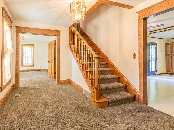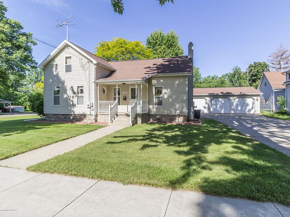 Welcome to 510 S. Clinton Ave. located in the heart of St. Johns. This quaint 3, possibly 4, bedroom 1 and a half story home sits on a massive and fully fenced lot. Entering the house from the front porch you notice beautiful oak trim through out the first floor. The main level has a master bedroom, large living room featuring lots of natural light, dining and open kitchen combo space that has a sliding door out to a large two tier deck perfect for entertaining and allows you to enjoy the well manicured back yard. Upstairs you will find two bedrooms and an area that can easily allow for a second living area, play space or an office. A detached 3 car garage provides plenty of room for storage of vehicles and toys. You will also find a work shop area and laundry space including an additional shower in the clean and well kept Michigan Basement.