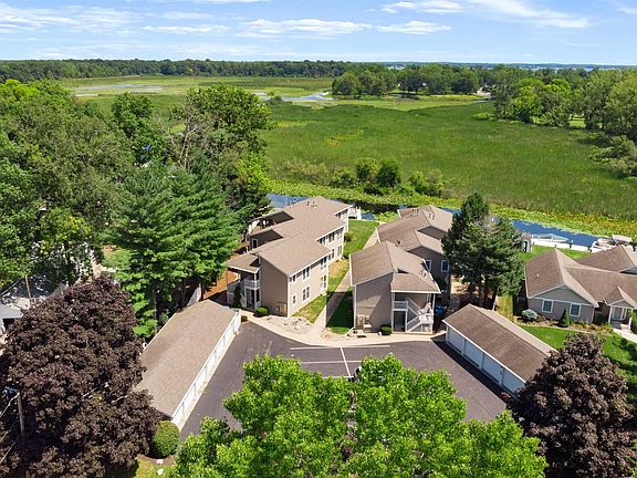 Welcome to this beautifully updated Marsh Harbor condo offering peaceful channel and marsh views, low-maintenance living, and easy access to both Lake Wawasee and Syracuse Lake. This second-floor unit has been thoughtfully updated and features 2 bedrooms, 2 full baths, and over 1,000 square feet of inviting living space. The open floor plan includes a spacious living, dining, and kitchen area with newer windows and a newer patio door that brings in great natural light. The kitchen has been refreshed with white painted cabinetry, a new backsplash, painted island, and several new Signature Series appliances including a microwave/convection oven, refrigerator, and dishwasher. A new pantry and beverage refrigerator add even more convenience. The living area opens to a fantastic 3-seasons room overlooking the channel—perfect for relaxing, entertaining, and enjoying lake views year-round. And, works as additional finished space if door is left open. Just outside is an attached open-air patio for sunshine and fresh air. The primary suite enjoys beautiful water views and direct access to the patio, along with a private ensuite featuring a stone and tile walk-in shower with a glass door. A second bedroom and full bath provide great space for guests, and the in-unit laundry makes everyday living easy. This condo also includes a deeded pier space for your boat and a single detached garage with extra room for lake toys. Marsh Harbor is a maintenance-free community, making it ideal for year-round or seasonal living. Enjoy nearby waterfront dining (Channel Marker, Oakwood Resort, Frog Tavern), shopping (Groceries, Boutiques), and the Syracuse-Wawasee Trail system, plus quick access to SR 13. A wonderful opportunity to enjoy lake life with comfort, convenience, and incredible views. Pet friendly. Floor plan available in attached documents.
