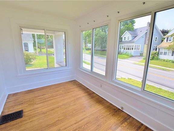 Charming colonial with natural trim and hardwood floors! The kitchen has an eat in "nook". Formal dining room and living room plus added space in the converted front porch. Sun-porch in back to enjoy your morning coffee! All new windows! 3 bedrooms and a full bath upstairs. Over-sized yard with a detached garage! Priced below assessed value. Great VALUE and convenient location!