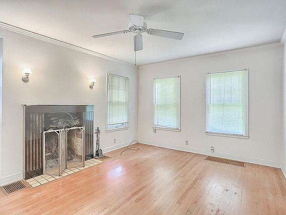 Beautiful curb appeal surrounds this adorable all brick ranch filled with charm and character throughout! This two bedroom home offers hardwood flooring throughout the living room with wood burning fireplace and formal dining room plus the two bedrooms. The full basement offers great storage space. The 882 sq.ft. unfinished attic is accessed through a bedroom closet and offers more storage space or space for future expansion. The detached garage offers 1 parking spot plus a separate finished heated/cooled 21'.5"x14' workroom and a covered porch. New roof in '12, new water heater in '13 and new HVAC in '03