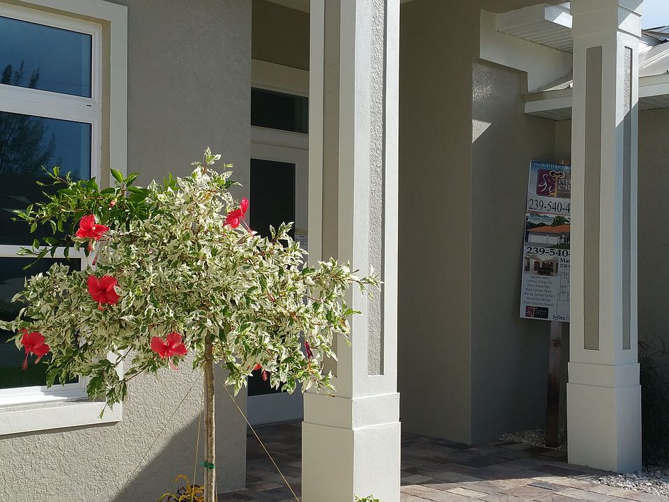 Skip that long cold winter up north. Come on down and enjoy your own private Pool/Spa home in Paradise, water view and outdoor bar included. This beautiful brand new home has 3 bedrooms Plus a Den with a pull out Memory Foam Sofa. 3 Full baths with spa jets in all showers. Great Room style living w/tray - lighted chair rail in ceiling, Wet Bar, Porcelain wood plank tile throughout living area, Bamboo wood in the bedrooms. Master bedroom also has w/tray - lighted chair rail in ceiling, and amazing bath, fit for a Queen. Kitchen offers large Island, with Granite counter tops & Wood cabinetry throughout the home. Dining room features large picture window with view of your wonderful outdoor living area. Den/1st bedroom offers French door with private TV area. 2nd & 3rd bedroom are separated by an extra large 2nd bath. The 4th bedroom & 3rd full bath have pool access. The Lanai offers amazing space with 320 square feet total under roof plus additional lanai under oversized picture window style pool cage.