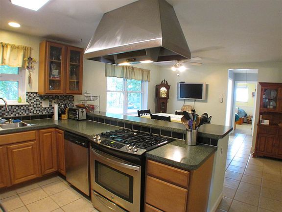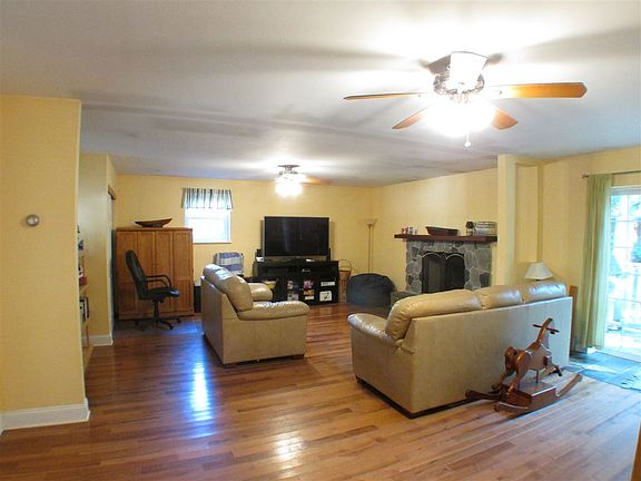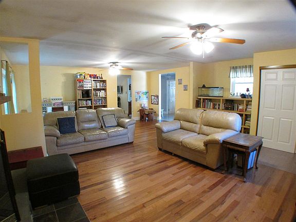 This well maintained two bedroom, one bath rancher features almost 1400 sq. ft. of living space. Home sits far enough back from the road on this 125 x 273 lot for plenty of privacy and has room for expansion. Large living room with hickory wood floors and wood burning fireplace leads to an open kitchen / dining area with tile floors and all stainless steel appliances. Wall was removed to make living room larger but could be put back to make third bedroom if needed. Home includes multi-zoned hot water base board heat, newer roof, one-year-old septic field and a brand new central air system will be installed. Sliders from the living room lead to a brand new deck and into the fenced rear yard. Detached two car garage has hydronically heated floors installed in 2014 and second floor to rear. Currently being used for extra storage this room could easily be finished with plenty of uses.