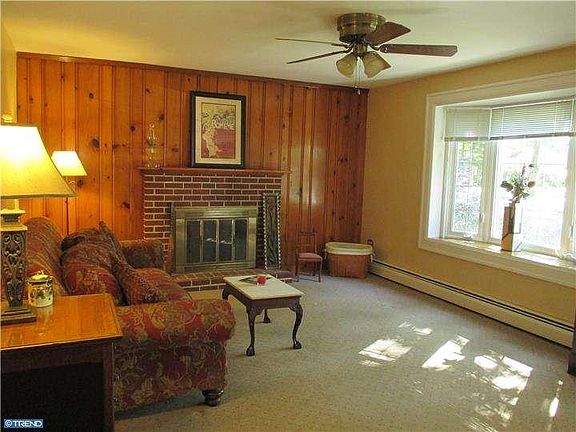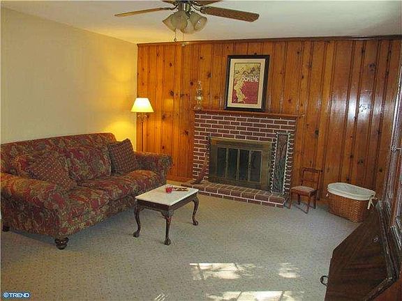 Delightful cape on charming tree-canopied street. Don't be deceived, this is a spacious over 2,200 s.f. home offering Living room with brick fireplace. Large eat-in kitchen with laundry area. Great sun-filled family room perfect for crowd-size entertaining. Family room featuring full wall stone fireplace with pellet stove for those extra cold winter days. Enjoyable, cheerful sunroom off family room. Pleasant deck off sunroom. Hardwood floors living room, dining room, 1st floor bedroom and 2nd floor bedrooms. Walk to North Wales Elementary and train. Convenient to major roads, restaurants and shopping.