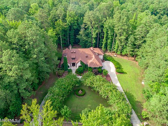 GORGEOUS 5 Bedroom custom brick home on private approx. 4 acre lot - only 3 miles from UNC & in Chapel Hill city school district. Main floor living level hosts 4 bedrooms in a split bedroom, open concept floor plan. Additional bedroom suite & living space in the fully finished basement that almost doubles the square footage of the home. Excellently appointed finishes include 3 fireplaces: 2 floor-to-ceiling stacked stone in the upstairs & downstairs living rooms & one in front office on main floor, Thermador appliances & new tile backsplash in the dreamy custom Kitchen, vaulted/coffered ceilings, crown moulding, custom closets, Mayan Pecan hardwoods, & more! Main Floor Primary Bedroom has lofty tray ceilings, bay window with a private view of the green forest behind the home, & a HUGE dressing room closet with built-ins galore. Screened in back porch is a great spot to sip coffee in the mornings. The finished basement leads to the stone patio with hot tub & built-in fireplace. Attic plumbed/wired/insulated & ready to finish for additional ~2000 sq ft per Seller. Room for a pool in the back yard! Ask for features list!