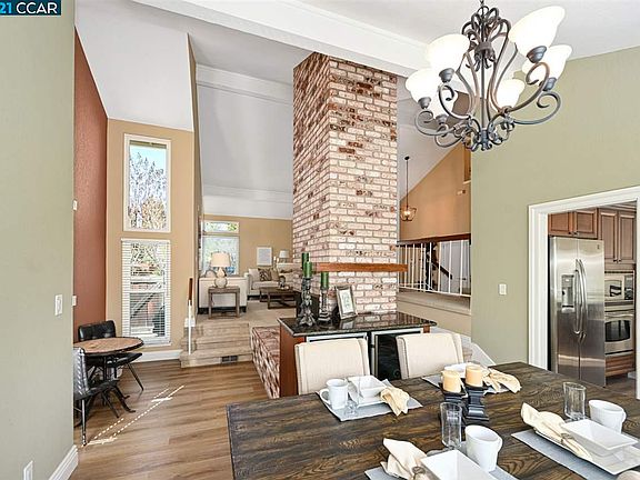 Great end of court location, pie shaped lot with gated paved side access. Enjoy outdoor entertaining with an inviting in-ground pool, horseshoe pit, large lawn area and huge side yard with raised planter boxes, 2 Tuff sheds and plenty of room for a basketball court etc. Kitchen and all 3 bathrooms have been updated! Kitchen features slab granite counters, travertine tile splash, GE stainless appliances including 5 burner gas downdraft cook top and refrigerator. New luxury vinyl flooring in living areas. Formal dining with 2 built-in wine/beverage refrigerators. High ceilings in living & dining rooms along with master suite. Master bedroom suite with retreat area for exercise equipment or sitting area and large walk-in closet with organizer. Conveniently located near excellent San Ramon Schools, Iron Horse Trail, Athan Downs Park and new City Center. This home checks all the boxes!!