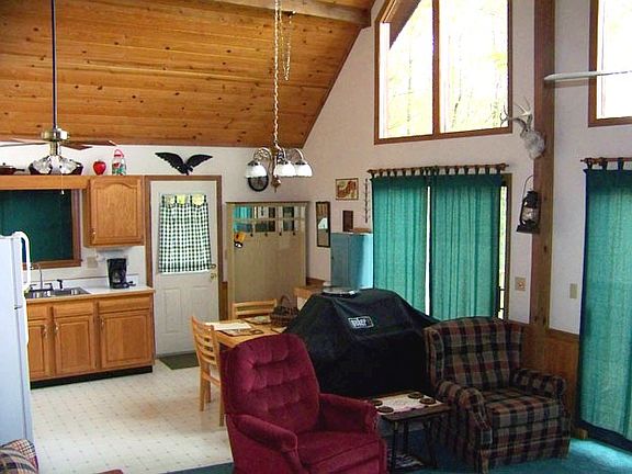 Mountain cabin with almost 1 acre privacy and lot in which you control your view. Home is very well kept with 1,000 sq ft of decking to enjoy the view. Home has electric zoned heat pump, masonry fireplace with gas log insert, vaulted ceilings. Downstairs in-law quarters with kitchenette and full bath. Also has an over sized attached garage with work space.