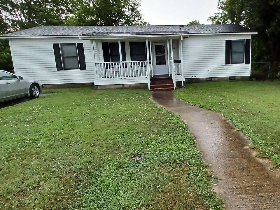 ''As cute as a button'' This house has about 1200 square feet with a kitchen, living room, 3 bedrooms (1 bedroom does not have a closet--it is right outside the door}, 2 full bathrooms, and a laundry room. It also features a small deck on the back and a large porch on the front. No appliances convey with this home. Enjoy the central heating and air conditioning (heat pump). The home is in the center of a lot with a large front yard and back yard--perfect for family events. This property is being sold AS IS.