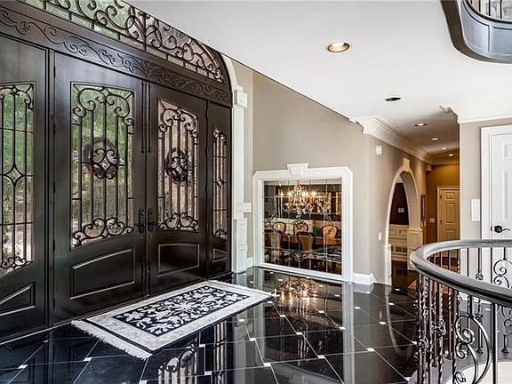 Upon driving through the gated, fenced property, you enter an oasis.. A custom home and guest house nestled among the 6.1 acres of landscaped and forest of hard woods. The architecture is reminiscent of grand European estates. Upon entering the estate style doors, you face a glass enclosed 3 level spiral staircase with a view that is private. The 2 story formal living room will show the craftsmanship of the custom molding and windows. The view is of the 12ft salt water pool w/custom slide and waterfall. Privacy abounds. The M bedroom has a gas fireplace, arched windows, plantation shutters. The master bath is located in the turret room with soaking tube, steam shower and towel warmer. The walk in closet has additional room for breakfast bar or storage The custom chef kitchen has double dishwashers, double ovens, 6 burner gas stove,griddle and warming tray. Great for cooking for large gatherings or catering. The breakfast room and keeping room are lined with windows for view of your property. Formal dining room can easily fit a large dining table with it's bay window and view of the garden. Laundry room, 2 powder rooms and rear staircase finish the main floor. The porch on this level has retractable screens The upper level has 5 en suite bedrooms with renovated bathrooms. One bedroom has a gas fireplace. One bedroom has a Juliet balcony. The hallway looks down into your formal living room. There is a staircase to the finished attic with a walk in closet. Pool level has in law apt or adult child apartment. Chair lift on back staircase to bedroom. Ramp to pool. Bedroom, living room, large walk in shower & closet.