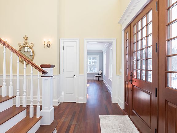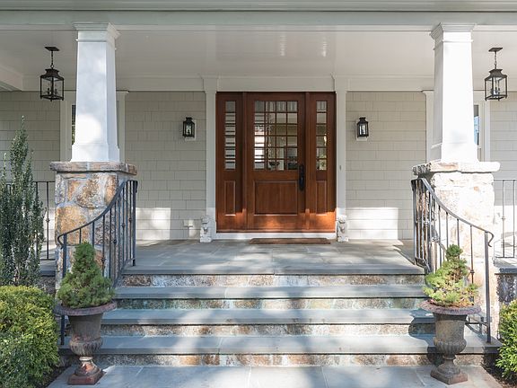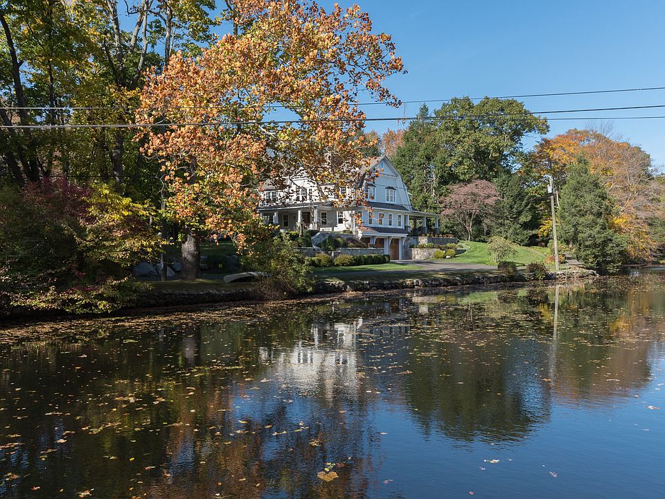 Exceptional Custom Construction 5300SF + unfinished LL w/10'ceiling 5-bedrooms & 4.5 baths. Built by renowned Builder Ralph Strazza & famed Architect Rudy Ridberg. Magnificently sited overlooking 365' river frontage on oversized landscaped property w/peace & tranquility, yet minutes to town. Open flr plan, great light & flow offering modern chic finishes. Brazilian Cherry Floors, Deep Moldings & 3-Fplcs. Formal LR & DR w/Butler's Pantry leading to spacious gourmet eat-in Kitchen w/center isle, custom white cabinetry, granite counters, artistic designed backsplash & top-of-line appliances. Adjacent Family Rm w/Frch drs to covered entertaining terraces w/fplc. Guest BDR Suite on 1st flr c/b Den/Office. Private Master BDR Suite + 3 BDR Suites on 2nd flr. Oversized 3-car gar & poss. pool site