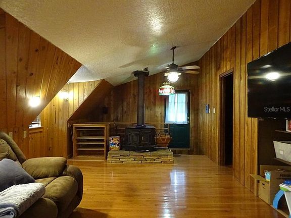 JUST REDUCED $10,000!!! IDEAL PROPERTY WITH A COUNTRY ATMOSPHERE, PLENTY OF STORAGE, AND ROOM FOR ALL YOUR BIG TOYS. This unique home is located on 5 acres with 2 barns, chicken coup, pasture, raised vegetable garden beds, and fencing. Many upgrades have been completed including: a new septic/drain field, 2 year old AC, new insulation, new water heater, all bathrooms remodeled, and new dishwasher. If you're a horse lover, there's a 24x54 livestock barn, with a connected 15x54 Lean To Shed and fenced pasture. For your boating and outdoor recreation, a new county park with a boat landing on Lake George, on the historic St. Johns River, is about 3 miles away. The inside walls of the living, dining, kitchen, and down stairs bedroom are Pecky Cypress. The living room has a wood burning stove capable of heating the entire home. A washer, dryer and a three year paid security system with ADT are included with the sale. The first level has a large bedroom with walk in closet, bath, 2 car garage/workshop, game room, 3 large storage rooms and a climate controlled dog room wi leading out to a fenced, secured area for your dog to roam. For the horse lover, the Lake George State Forest is a short horseback ride away. The home comes with a screened back porch, and a secure room for safety and storage for valuables. The property is located near schools, library, shopping, doctors, restaurants, within 45 min. of beaches, and 20 minutes from several fresh water springs. Much, much, more to see.