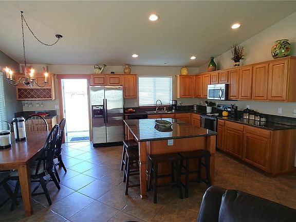 Beautiful 3 bedroom, 2 bath home on a 1/2 acre + lot. Located on a quiet cul-de-sac with easy access to the 8th hole of the golf course. Interior features granite counter tops, ss appliances, custom cabinets, center island with tile and carpet throughout. Floor plan is open with gas fireplace. On the exterior you have a large stamped concrete patio, fire pit, hot tub, & fenced backyard with beautiful lake & mountain views. There are three 30 amp RV hook-ups & plenty of room for pool or shop.