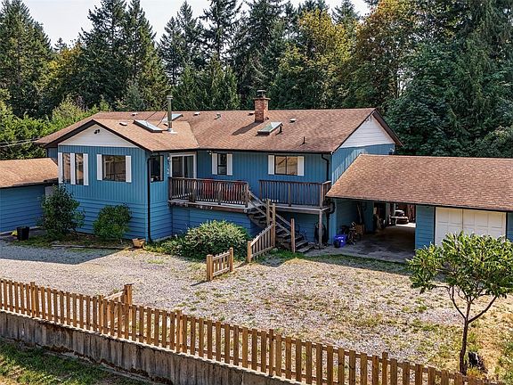 Located in the most desirable area of Mill Bay, on a quiet no thru road, you will find this 3000+ sqft home on a sun-filled 3.07-acre parcel surrounded by pastoral views, fruit trees & gardens. The home features 5 Bed & 3 Baths, including a totally updated 1-bed & den suite, which has been used as a successful Airbnb rental. As you enter the upper level, you enter a nice sunroom/sitting area, which then leads to your large Country Kitchen, an open-concept living and dining area, and three spacious bedrooms. The picturesque back garden features fruit trees, grapes, and an attached greenhouse with a large patio area. The rear of the property is wooded and park-like. Also, there are 2 single-car garages, a carport, Chicken Coop, a horse barn, an orchard & RV parking. The zoning allows for a potential subdivision with the minimum lot size being 0.98 acres (buyer to verify). The property offers exceptional value given its size, location, and income potential in the Mill Bay market.