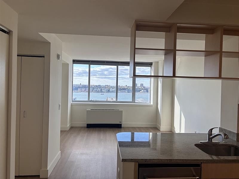West-facing studio apartment homeHudson river viewsTiled flooringHard surface flooringOak cabinetryTwo rooftop sky decksGrey granite countertops