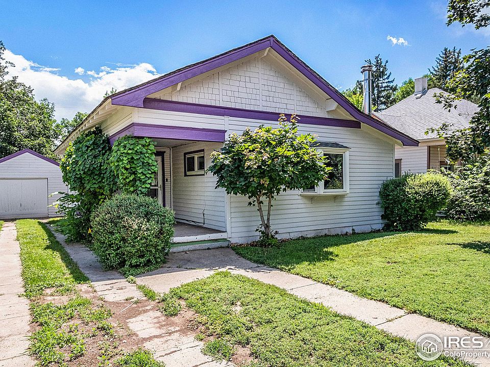 Back on the market with a new Class 4 roof! Priced for a quick sale. Charming bungalow situated in the heart of downtown Loveland's most prime location. Built in 1900, this ranch-style home offers two bedrooms and a full bathroom. In addition to wood flooring, you will find two cozy living spaces and a bright sunroom on the rear of the home. The backyard is large and private, offering a garden shed and alley access. A detached one car garage is located on the side of the home. New carpet and 2 year old furnace.