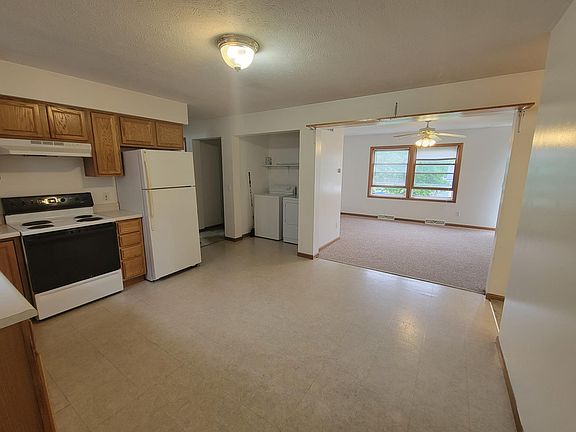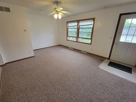 Open concept kitchen, dining area and living rooms. Two full bathrooms, Four bedrooms and laundry all on main level. Off-street parking. Landlord provides lawn care and snow removal service. Utilities are tenants' responsibility.