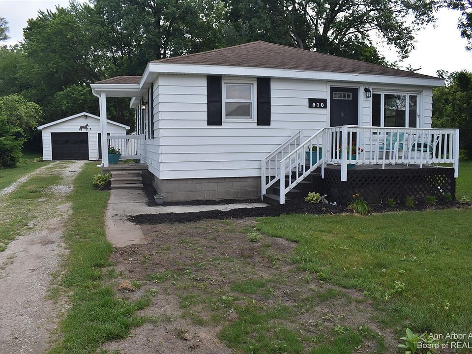 Includes 2 Lots with 2 Garages on .79 acres!! Love grows best in little homes, especially the ones that melt your HEART!!! A perfect location, not far from town, and blessed with Character all around!! This charming Ranch offers 2 nice sized Bedrooms with original hardwood floors and an updated Bath with tile surround. A country Kitchen with stylish concrete countertops and complimentary tile backsplash--which is quite the eye catcher!! Brand new Furnace, Water Heater and A/C, full Basement with laundry area and plenty of extra storage. City Sewer, Natural Gas, Paved Road--Spot on I must say!!! Seller will consider selling home and homestead parcel (.30 acres) separately.