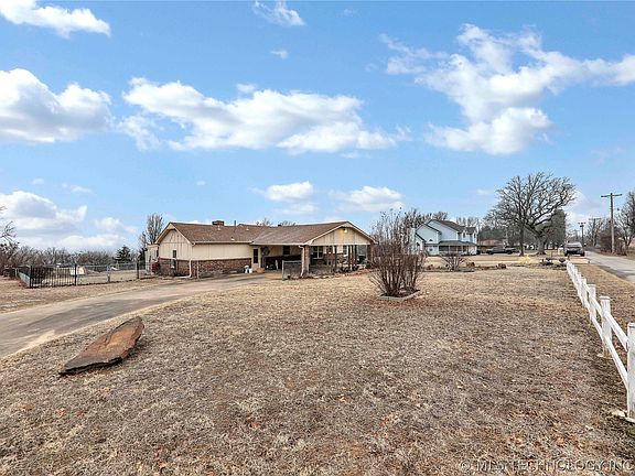 The perfect setting on a quiet street with a view for miles. 2 oversized lots gives you privacy in town. It has a large kitchen with plenty of storage. The living room looks out over the Henryetta valley. It's original wood floors are beautiful and needs some love. The master bedroom is an ensuite with plenty of closet space. This offers "some back porch sittin'" with that view. This was the home of a gardener who has left plenty of flowers to enjoy. A garden spot is fenced off. The storage sheds are very well built offering plenty of room to store those extra lawn tools and equipment. This property includes 2 lots with an easement between them. The second lot is just south of the house. So no one can built a structure to ruin the view.