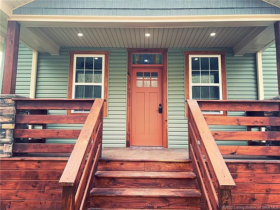 Escape the hustle of the city in this GORGEOUS renovation on Main St in Borden. 22 mile commute to downtown Louisville. Scenic view with all of the perks of small, in-town living. No expenses spared, BRAND-NEW: ROOF, HVAC, WINDOWS, WATER HEATER, ELECTRICAL WIRING, APPLIANCES, HARDWARE, ENGINEERED HARDWOOD FLOORS, LIGHT FIXTURES, KEY CODE FRONT DOOR LOCK, POCKET DOORS, SOLID SURFACE CORIAN COUNTERTOPS. Walk-in closets, trendy color schemes inside and out, clean/well-lit basement, electric garage doors, black-topped driveway, huge flat yard, landscaped home contouring, sprawling back deck, covered front porch with a beautiful wooded view of Borden Clark Co. hills and historic railroad line.