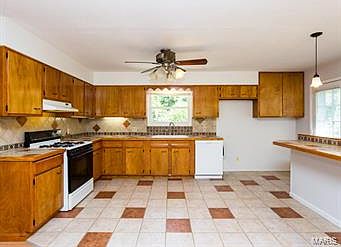 Trees and nature surround this 3 bed / 2 bath doll house in the heart of De Soto. Located at the end of a dead end street, you have the feel of the country, but the convenience of living in town. This home has been well maintained and loved by the owners. An open combination kitchen / living room plan is comfortable and easy to manage. Access the deck from the kitchen for grilling or relaxing... The master bedroom is huge! It feels like an oasis...the master bath is updated and has a jetted tub to enjoy. There is enough room to create your own special sitting room, craft area or office. The other two bedrooms are nice sized as well. The hall bath has also been attractively updated. Downstairs is partially finished. Make it your family room or use it for for special occasions when you have a large group of family or friends over. Walk out to a large private patio that backs to trees. The patio has a large Sunsetter fabric awning to open when you want additional covered space.