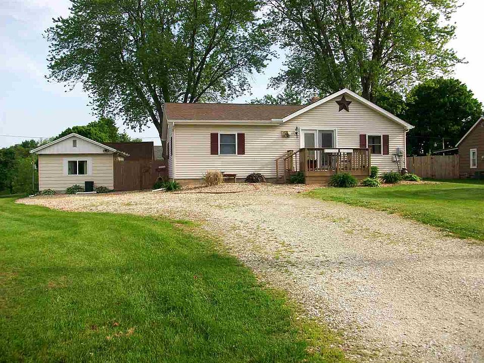 This 3BR/2BA ranch is move in ready! It sits on great corner lot on the W. side of town. It offers a large 100X164 lot with a fenced in back yard. It also offers a detached 1 car garage (garage door 2yrs. old) & shed. A bonus 14X22 building which is currently used as a "Man's Cave" (it is heated by an electric heater & cooled by window air) & does include bar. The inside of house was updated in 2013. The kitchen was updated in 18 with hickory cupboards, new vinyl flooring, & countertops. The kitchen comes fully applianced. The appliances aren't warranted. There is a beautiful master bedroom with walk in closet & full bath. Newer flooring in both baths & laundry room. Roof new in 18 with a transferable 50 yr. warranty. The house also offers replacement windows, jetted tub in main bath, is tastefully decorated, nicely landscaped, main fl. laundry, & sits in a very desirable neighborhood. Dog pen will stay.