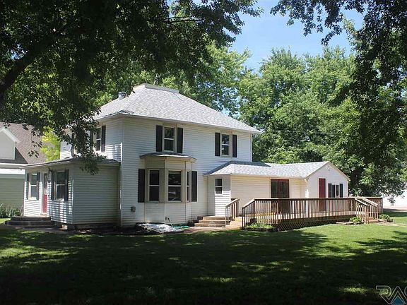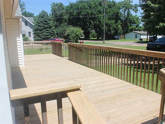 Lots of charm and character with plenty of new refreshments! New carpet in upper bedrooms, Hardwood has been refreshed and new flooring in the living room and front porch! Most of the interior has been repainted. The freshly redone front porch has many uses as a bonus area. The classic living room with hardwood floors and beautiful open staircase adjoins to the master bedroom through french doors. Upstairs has a 3 bedrooms on one level plus a large full bathroom. The large side deck is a great place for outdoor activities accessible through family room and sliding door. Large front and side yard with alley access on a corner lot! Easy commute to SF or Mitchell with Lake Vermillion State park 5 min away. Vibrant small town living awaits.