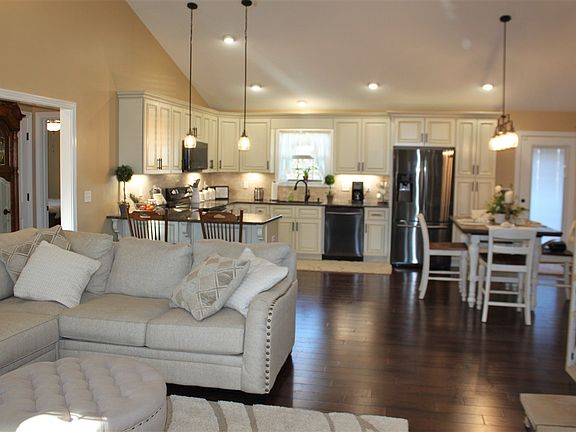 This custom built home has the features you want. They include an open floor plan with cathedral ceiling and split bedroom design, beautiful custom cabinetry with granite counter-tops, hardwood floors, a stone fireplace in the great room, and lots of recessed lighting. The walk-out basement has a huge family room, full bathroom, a workshop, and plenty of unfinished storage space. You'll be impressed at the quality both inside and out.