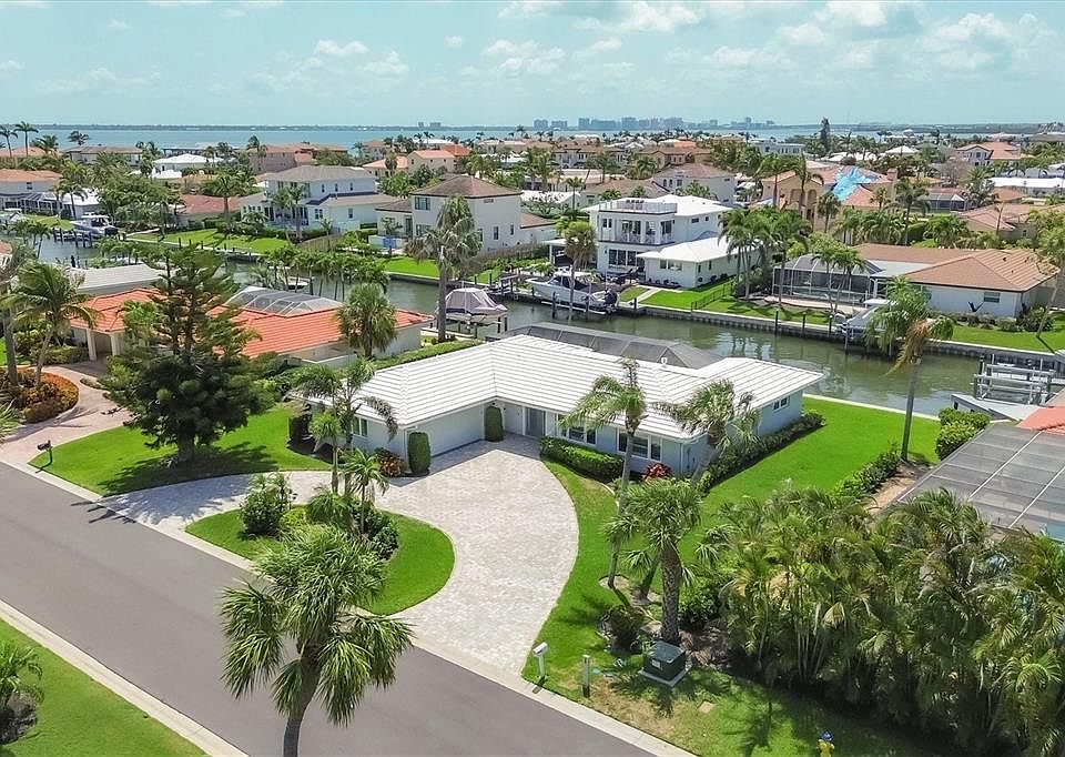 Welcome to your own piece of paradise in the prestigious Country Club Shores neighborhood on Longboat Key. This stunning 4-bedroom, 3-bath home has been thoughtfully renovated with a perfect blend of coastal elegance and modern sophistication, offering ideal indoor-outdoor living along one of the island’s serene canals. Inside, you’ll be welcomed by a bright, open-concept design featuring beautiful, engineered wood floors, custom beadboard ceilings, and a soothing palette of sea-glass blues and clean whites. The heart of the home is a gourmet kitchen outfitted with stainless steel appliances, designer pendant lighting, and stylish lattice-front cabinetry. A large island anchors the space, perfect for entertaining, while the adjacent living area boasts custom-built-ins, a sleek gas fireplace, and expansive views that flow effortlessly outdoors. Each bedroom is designed for comfort and privacy, with spa-inspired bathrooms that feature elegant tile work, modern fixtures, and soft lighting. The primary suite is a retreat of its own, with custom shelving, cozy window seats, and lush garden views through plantation shutters. Step outside to experience Florida living at its finest. The spacious screened lanai surrounds a sparkling heated saltwater pool and paved deck, creating a private oasis perfect for lounging, swimming, or dining alfresco in total comfort. Just beyond, a large, newer dock awaits, offering deep-water canal access—an ideal setup for avid boaters and water lovers. The deck overlooking the canal is a peaceful setting for morning coffee or an evening cocktail This home also offers exclusive deeded beach access, just a short walk or bike ride away, where you can soak in the soft white sands and turquoise waters of the Gulf. When it’s time to explore, the renowned boutiques and fine dining of St. Armands Circle are just down the street, offering vibrant nightlife, unique shopping, and gourmet experiences in a picturesque coastal setting. A short drive over the scenic Ringling Bridge takes you to downtown Sarasota, a cultural haven known for its art galleries, theaters, opera house, and waterfront dining. Whether you're strolling through the Saturday farmers market, taking in a performance at the Sarasota Opera, or enjoying waterfront cocktails at Marina Jack, the city provides an enriching blend of sophistication and coastal charm. With its ideal location, timeless design, and luxurious updates, this home offers the very best of Longboat Key living—a rare opportunity to enjoy both boating and beachside leisure in one of Florida’s most coveted communities.
