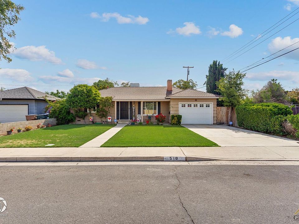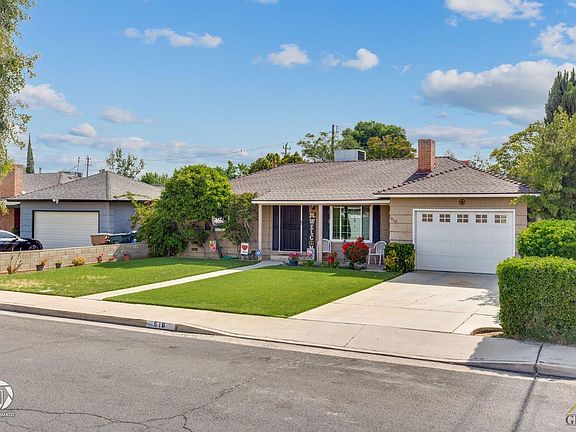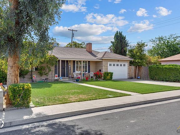 Charming and affordable Southwest Bakersfield home in great location. 2brs, 1 bath, spacious living room with brick fireplace, cozy breakfast nook with breakfast bar looking into updated kitchen with white cabinets, tile counters and tile floors. Both bedrooms are very spacious. Bathroom has been updated with newer vanity,plumbing fixtures and tile floors. Beautiful backyard and large covered patio with extra concrete. Seller has replaced windows and added insulation to exterior walls and attic. Oversized 1 car garage.