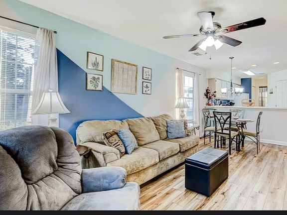 Beautiful 2-bedroom furnished end unit located in one of the most desirable neighborhoods " River Oaks '. The unit has been used as an investment property. New owners get to enjoy the New HVAC system & New hardwood flooring in the living room & kitchen. This lovely home comes fully furnished and is move-in ready with everything you need to start enjoying the beach lifestyle! The open concept is great with the kitchen open to the dining and living room. Enjoy the luxury of living close to everything Myrtle Beach has. From world-class golf courses and pristine beaches to shopping, dining, and entertainment, every aspect of coastal living is within reach. As a resident of River Oaks Condos, take advantage of community amenities such as a pool, tennis courts, and meticulously maintained grounds. Immerse yourself in the landscape and experience the coastal lifestyle in this 2-bedroom condo in River Oaks. Don't Delay - Call You're Realtor TODAY!