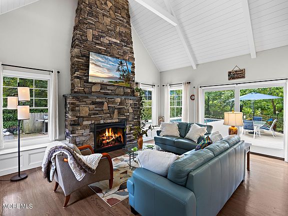 One of Interlaken's premier properties situated on a gorgeous lakefront lot. This stately colonial with a stunning 700+ sq ft fully renovated all-season guest house is located on one of the most desired streets in town.The main house is filled w/charm & character w/beautiful hdwd flrs,LR w/gas FP,Formal DR,sunroom,LG EIK w/Brazilian cherry floors &newer high-end appl.Adjoining family rm leads to gorgeous wraparound porch, all w/great water views. Upstairs enjoy 4 spacious BD incl a spectacular primary w/huge dbl bath,2 WICs, sitting rm, gas FP & private balcony.2 more full BA & laundry rm complete 2nd fl. Guest house has cathedral ceiling,stone gas FP,EIK,full BA,laundry,loft & overlooks lake & inground heated saltwater pool. Private fenced yard,dock,basmt,garage& more! Too much to list!