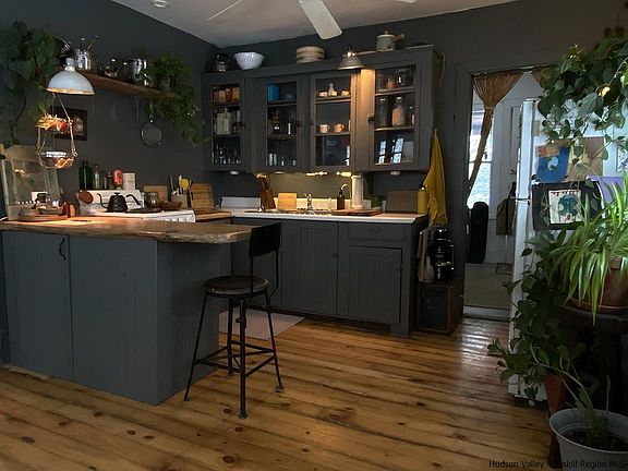 Waterfront Bungalow with Separate Studio in Woodstock. Two bedrooms, eat in kitchen, living room with wood stove and laundry room make up the bungalow. Second floor attic converted to bedroom with built in bed and closets to best utilize the space available. The studio has the best views of the creek with it's own electric heat. The studio also has a sound proof music room, storage and large home office. Last, the 20X20 work shop is currently used to store wood and equipment. Three buildings, on the creek, close to the village of Woodstock, Kingston, Saugerties and the NYS thruway, make this an excellent buy in today's market.