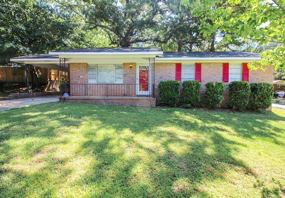 Check out this North Columbus all-brick home on nice sized corner lot! This home features a separate spacious living room off of foyer & eat-in kitchen w/ breakfast bar. Kitchen has tiled flooring & french doors leading to the backyard which provide lots of natural light! 3 spacious bedrooms w/ great closet space. Half bath attached to master. Full bathroom has extra storage cabinet. Single carport featuring laundry/storage room. Ceiling fans in all bedrooms and living room. Call today to view!