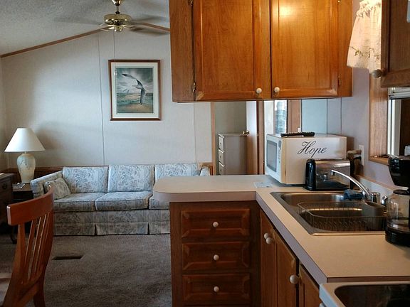 Estate Sale 882 sq. ft, 2 bedrooms, 1/1/2 bath overlooking the picturesque Braden River with a deck for morning coffee or watching the evening sunset. Check out the Virtual tour! Perfect for year-round, vacation use, or rental. One owner since 1993 needs very little, new carpet and anything else can be done to your taste. Priced below market to sell now! Located in a 55+ gated Lifestyle community that is unique, clean, and safe! Connected by a wooden bridge to a 12- acre island with a fishing pier and boat dock for free use, nature trails. Horseshoe Cove has amenities to keep you busy and relaxed. Pet friendly and a community of neighbors who support you. Close to beaches, less than 2 miles to I 75 exit 117 Sr 70 Bradenton in Horseshoe Cover RV Resort. The seller offers a Home Warranty. FREE Boatslip at the marina!!! All listing information is deemed reliable but not guaranteed and should be independently verified through personal inspection by appropriate professionals. Integrity Mobile Home Sales cannot guarantee or warrant the accuracy of this information, measurements or condition of any property. Measurements are approximate. Lot rent is subject to change.