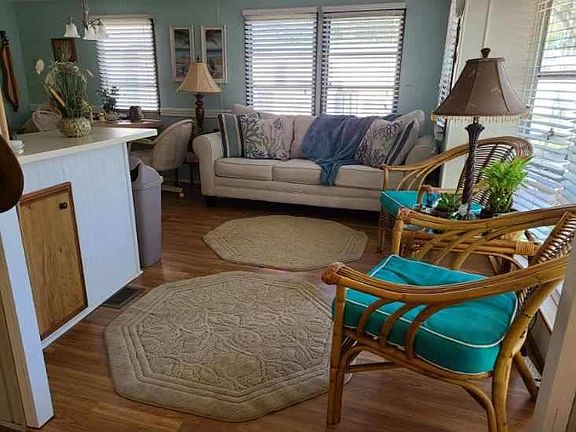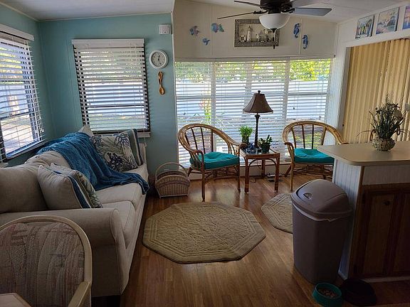 *****CALL FOR AN APPOINTMENT TODAY*****This is a furnished 1 bedroom 1 bath in a beautiful riverfront community on the Braden River. Living Room-laminate floors. Lots of windows for that great Florida ambiance. 2 chairs, 2 end tables and TV included. Ceiling fan for comfort. Dining Room-includes table and 4 chairs with laminate flooring.. Kitchen-open concept. Stove, refrigerator, microwave, double sink. Has pass through to the enclosed Florida Room/Family Room. Laminate floor. Hallway-lots of storage here. A coat and storage closet on one side of the hall and a coat and clothes storage closet with shelves on the other. Bedroom-Queen bed and storage above. Armoire, full length mirror and a night stand. Ceiling fan for comfort. Bathroom-vinyl floor for easy clean up Tub shower combo, commode and large L shaped vanity. Double mirrored medicine cabinet. Family Room- Vinyl windows and screens. Carpet flooring. 3 recliners, arm chair, lamp table, end table, tv with stand and 3 drawer dresser for more storage. Ceiling fan for comfort. Laundry Room/Office-carpet floor. Stackable washer and dryer and a large storage cabinet. Plenty of room for a desk. Covered/screened Deck- painted 2019. Has table and two chairs. Great place to relax. Patio-pavers and perfect for more outside furniture to relax. Carport for the car. New handrail inside entry in 2019. New landscaping in 2019. A great home is a great community. A super hideaway for that perfect getaway. A 55+ community that has their own island accessible by foot, bike or golf cart with boat dock and fishing dock and a screen large pavilion with grill and a gazebo. Lots of trails to ride or walk. Enjoy the pool, private gym, pickle ball court. petanque, horseshoes, billiards and darts. A very, very active community. One of the best kept secrets just off SR 70 in Manatee County. **All listing information is deemed reliable but not guaranteed and should be independently verified through personal inspection by appropriate professions. Lighthouse Mobile Home, LLC cannot guarantee or warrant the accuracy of this information or condition of this property. The buyer assumes full responsibility for obtaining all current rates of lot rent, fees, or pass-on costs associated with the community, park or home from the community/park manager. Lighthouse Mobile Home LLC is not responsible for quoting of said fee