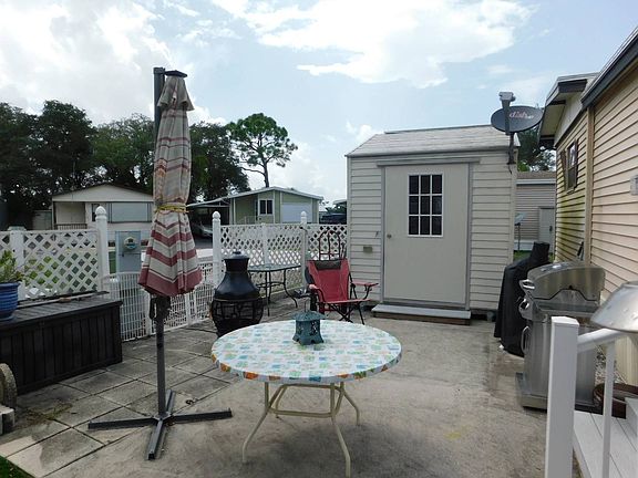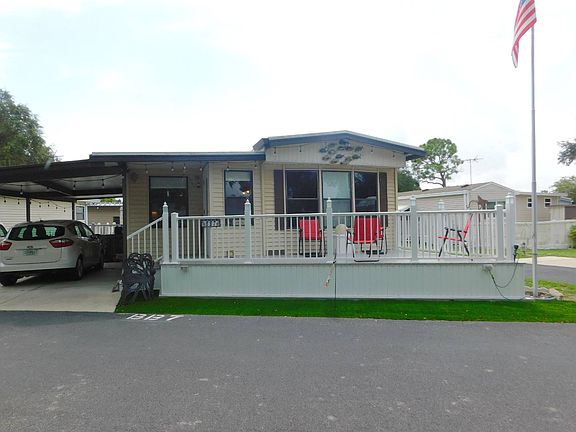 *****CALL FOR AN APPOINTMENT TODAY*****This is a stunning one bedroom one and a half bath home in an amazing riverfront community. It has been completely and totally updated with the exception of the siding and the windows so there is nothing left to be done here. It has that at home feeling as all walls were insulated and sheet rock with double knockdown on walls and ceilings throughout. It is not a park model. It is a home!!!! That is what makes this one so very special. It has an All Weather Roof, transferrable to the new owner for a nominal feel Hot water heater is 30 gal and new in 2016. Laminate floors throughout the home in 2016. All plumbing redone and is PVC. Electrical redone throughout the unit. Lifetime Deck and small back deck and steps done in 2019. All window blinds stay. There is LED lighting throughout the entire home. The living room is large and has two ceiling fans for comfort. The TV stays in this room. Plenty of room to entertaining guests. The dining room has room for the table and chairs and has bench seats on two wall with storage underneath. The Kitchen was completely remodeled with such incredible detail. New cabinets and slow close drawers, two tone colors, granite countertops, breakfast bar with sink and garbage disposal to make prep work easy. Large sink on other side as well with garbage disposal. All appliances new in 2016 and stainless. Under counter LED lighting. The microwave is also convection. Backsplashes are perfectly matched and there is so much room to work in this kitchen and you can still see your guests as well. A chefs dream here!!! They had a double pantry put in the hallway accessible to the kitchen for lots and lots of storage. Bathroom-complete remodel with huge linen closet, comfort height commode, tall vanity and a large walk in shower with tile walls and glass enclosure. New lighting as well. Bedroom-has a queen bed in it now but they are taking that and could fit a king as well with one night stand instead of two Double side by side closets. Double cabinets on each side of bed above night stands. Ceiling Fan has remote so you can turn the light off then you go to bed or adjust the fan without getting up. Laundry room/half Bathroom-large room remodeled with a large vanity, comfort height commode, very large closet with bifold doors and an area for washer and dryer. This home has a back fenced patio so great for your pets if need be. This home also has new exterior doors. There is a shed with electric (8x12) with air conditioning. There is a double driveway with a carport on one side. This is a large lot and the use of space on this one is amazing!!! Such care was taken with all the upgrades and total remodeling to make things convenient and make life easier and no stone was left unturned here. You will love this home and that is what it is - A HOME - this one is not a cottage or river house, it is a home. Totally insurable and you do not want to miss seeing this one!!! These do not become available often!!! A 55+ riverfront community that has their own island accessible by foot, bike or golf cart with boat dock and fishing dock and a screen large pavilion with grill and a gazebo. Lots of trails to ride or walk. Enjoy the pool, private gym, pickle ball court. petanque, horseshoes, billiards and darts. Has a huge wood working shop and stained glass studio. One of the best kept secrets in Manatee County. **All listing information is deemed reliable but not guaranteed and should be independently verified through personal inspection by appropriate professions. Lighthouse Mobile Home, LLC cannot guarantee or warrant the accuracy of this information or condition of this property. The buyer assumes full responsibility for obtaining all current rates of lot rent, fees, or pass-on costs associated with the community, park or home from the community/park manager. Lighthouse Mobile Home LLC is not responsible for quoting of said fees