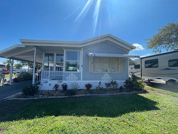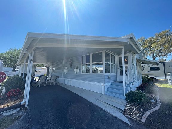 5100 60th St E Lot K1 Bradenton, FL 3420s Horseshoe Cove RV Resort 55+ age restricted Community This home is on a rented/leased lot. This 2BR/1.5 BA home comes with a full length 10 x 20 add-on and 2-car covered carport. There is also a fully enclosed, separately cooled, glass window, rear add-on office/bedroom section. The high-end central AC is 2021! There is a new heat pump and hot water heater. The home comes with an inside laundry setup (washer/dryer included in the sale). There are 2 storage sheds (one inside and one detached) and new west-side awnings. There is laminate flooring and newer mini blinds throughout! The home comes partially furnished. The home is situated on a corner lot and is tastefully landscaped giving the home great curb appeal. The eat-in kitchen has a built-in storage hutch and tile countertops. It comes with all the appliances including refrigerator, stove, and new dishwasher and microwave. There is a large pantry. There is also an installed garbage disposal. There are separate living and dining areas. The dining room is adjacent to the kitchen. The living room runs the full length of the main home. The main bedroom has built-in storage and closets. The half bath includes the stack washer/dryer. The full bath has been upgraded with a tile-walled walk-in shower and a single sink vanity. The monthly lot rent of $845 includes lawn maintenance care and trash removal. (The final actual lot rent TBD by Horseshoe Cove Property management). In a picturesque oak grove along the Braden River, Horseshoe Cove RV Resort provides guests and residents with a 5-star luxury lifestyle. From our 12-acre private island park with its lighted fishing pier, to our nature trails and screened-in picnic pavilion, Horseshoe Cove more than earns its reputation as the highest-rated RV park in Bradenton, Florida. At Horseshoe Cove, our 475 grassy sites feature full-hookups, concrete pads and private picnic tables. Our grounds feature four laundry rooms, three bathhouses and a dog walk for pet-owners. Rally goers especially appreciate our expansive recreation center which features a kitchen, library, billiards and darts, a sewing room and a card room. Outdoors, our guests enjoy shuffleboard, horseshoes, Pétanque and swimming in a heated swimming pool and hot tub. During the winter months, we pack the days with community bingo, crafts, potluck dinners, woodworking, billiards, educational lectures, coffee hours, dances, pool parties, movie nights and music. Florida MH Sales, LLC cannot guarantee or warrant the accuracy of this information, measurements, or condition of any property. Measurements are approximate. All homes are sold "as is" and personal or professional inspection is encouraged. Lot rent is set by the community and is subject to change. All buyers must be approved by the community prior to closing on a negotiated sales contract.