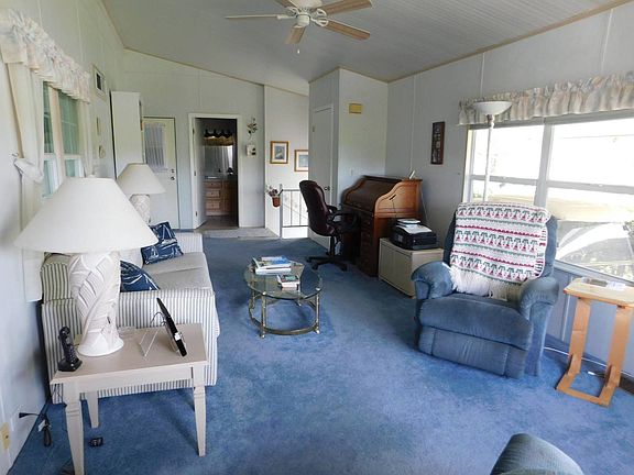 *****CALL TODAY FOR AN APPOINTMENT TO SEE THIS ONE***** This is a wonderful turnkey furnished riverfront home with a breathtaking view of the Braden River. A deal at this price with this view!!! This one has an entry foyer with ceramic tile steps. Cathedral ceiling throughout give this one that large open feel. The Living Room is very large with lots of windows for great Florida lighting. All blinds and window dressings stay. There is a door for access to the riverfront deck. Ceiling Fan for Comfort. There is a sleeper sofa (2014), TV, rolltop desk and two recliners. The Dining Room has a bay window for that river view. It is carpeted and has a ceiling fan for comfort. There is a table and six chairs. The kitchen has a refrigerator (2013), stove, dishwasher, double sink with updated faucet. There is a built in china cabinet. Also has a pantry for plenty of storage.It has an L shaped countertop for more prep space and ceramic tile flooring for easy clean up.The bedroom will accommodate has a queen bed with two matching nightstands, lamps, a dresser and has a large side by side mirrored closet with 10 drawers below. There is overhead storage also. It is carpeted and has a ceiling fan. The first bathroom has a tub shower combo, a comfort height commode, a linen closet and ceramic tile flooring. The second bathroom is very large with a glass enclosed shower, full vanity with sink, comfort height commode and ceramic tile flooring. This also contains the washer/dryer with shelves above. The riverfront deck is large with builtin benches for relaxing with friends on watching the sunset. You have steps to the driveway from the deck also. Has a long driveway/carport that will accommodate at least two cars and has pavers beside it by the driveway. Has a large shed also so storage is ample here. Water heater replaced in 2014. Rubber roof done in 2011. Washer and Dryer in 2009. New blinds 2014 New Carpet 2014,. The new deck was installed in 2017. This is a great home and is turnkey so you can bring your clothes and move right in. This home is located in a 55+ community on the Braden River. It has its own 13 acres island with boat docks, lighted fishing dock, screened pavilion, horseshoes, petanque, gazebo, walking trails and more and is accessible by foot, bike or golf cart as is for residents only. The community also has a pool, hot tub, tennis court, billiards and darts room, library, woodworking shop, stained glass shop, and so many activities that there is something going on all the time. Conveniently located right off of SR-70 close to I-75, shopping, dining, medical facilities and only a short drive away from our world family white sandy beaches. ***All listing information is deemed reliable but not guaranteed and should be independently verified through personal inspection by appropriate professions. Lighthouse Mobile Home, LLC cannot guarantee or warrant the accuracy of this information or condition of this property. The buyer assumes full responsibility for obtaining all current rates of lot rent, fees, or pass-on costs associated with the community, park or home from the community/park manager. Lighthouse Mobile Home LLC is not responsible for quoting of said fee