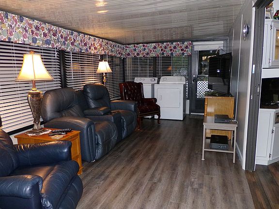 *****CALL FOR AN APPOINTMENT TODAY***** This is a 2 bdrm 1 bath home in a wonderful Braden Riverfront Community. It is furnished with all you see in the pictures. Has a living room dining room open combo, kitchen, master bedroom, guest bedroom, bathroom and enclosed florida room. There are laminate floors throughout and all window dressings and blinds stay. Living Room- sleeper sofa, corner cabinet which is the TV stand. Ceiling fan for comfort. Dining Room- table and two chairs. Kitchen-gas stove, refrigerator and plenty of cabinets. There is a pantry next to the refrigerator. Extra cabinet against the wall for more storage and great for a coffee bar, with storage above as well. There is an attached table that folds down and serves as a breakfast bar with two folding chairs. Hallway-has a side by side closet with drawers below and cabinets about for even more storage. Bathroom- updated with vanity, fixtures, comfort height commode and lighting. There is lots of storage above and beside the commode and a linen cabinet as well. Has a shower with attachable handles if needed. 2nd bedroom-has twin beds and can be put together to make them a king. Has a built in dresser and second dresser as well. Ceiling fan for comfort. Side by side closet with drawers below and cabinets above. TV stays as well. Master Bedroom-will accommodate a king or queen. Two dressers, two night stands and lamps. Bed frame is for a queen bed. Enclosed Florida Room-Has windows and screens. Has a love seat with two recliners, a separate recliner, TV stand and end tables. There is a washer and dryer here also. Lots of room for entertaining. There is a new small deck with steps leading to the back patio and shed. The shed is large and has electric so plenty of storage and work space. There is a long driveway with partial carport and should hold two cars and the golf cart. There is a concrete pad patio in the front which is perfect for your outdoor furniture. There are two awning on this home. Plenty of room to entertain inside or out. The bedroom addition was done in 2018. Concrete front patio done in 2018. Back steps in 2019. AC cleaned and inspected 2019. This home has had plenty of upgrades and crown molding is there but not done yet in the master bedroom. This one can become yours with very little to be done.This home is in a pet friendly 55+ gated community on the Braden River. They have a pool, hot tub, fitness room, billiards and darts room, library, clubhouse, woodworking shop, stained glass shop, and they has there own 13 acre island on the river with boat docks, lighted fishing dock, pavillion, gazebo, walking and riding trails, horseshoes, petanque and so much more. There are activities galore from bingo to card games to dinners and dances. Too many to mention but they have a monthly calendar so you won't miss anything. Less then a mile from I-75 and right off of SR 70 and riight by fine dining, shopping, medical facilities and more. This is all about location, location, location and is the best kept secret in Manatee County. Come see it today!!! ***All listing information is deemed reliable but not guaranteed and should be independently verified through personal inspection by appropriate professions. Lighthouse Mobile Home, LLC cannot guarantee or warrant the accuracy of this information or condition of this property. The buyer assumes full responsibility for obtaining all current rates of lot rent, fees, or pass-on costs associated with the community, park or home from the community/park manager. Lighthouse Mobile Home LLC is not responsible for quoting of said fee