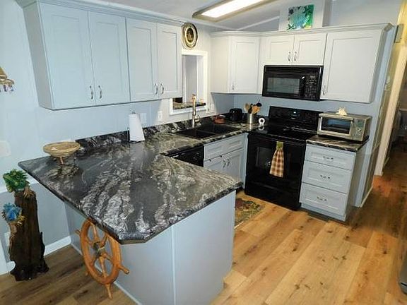 ** Exclusive Listing! Contact listing agent below for ALL showings and offers.** NOT JUST ANOTHER PARK MODEL! BETTER THAN NEW!! You will soon be living the good life as the new owner of this thoroughly updated, smartly expanded, and exceptionally well maintained 1987 Park Model. Priced to sell at $63,900, and measuring 11x40, plus the additions of the living room, and guest bedroom/bathroom, this tremendous home will provide approximately 790 square feet of living space, with two bedrooms and two bathrooms. Stepping inside the front door, you will feel as if you've entered into a standard double-wide home! Some of the updates in recent years include the remodeled bathrooms, kitchen, flooring, and light fixtures. It is in excellent condition, immediately available, and will be sold mostly unfurnished (appliances will be included), so you may quickly begin to make this your forever home, with your own familiar furnishings and style. Outside, the covered front porch will be the perfect place for fresh air and a warm breeze. Your new home is ready and waiting for you in Horseshoe Cove RV Resort of Bradenton, a very active, fun, and well appointed 55+ community near all the best of Central Florida. The monthly lot rent of $749 includes lawn care, trash removal, and use of the park amenities. You deserve to have a home as nice as this! Call today and let us help you make it yours! This is a park model home on leased land. The monthly lot rent is $749. The land/lot is not included with the sale.